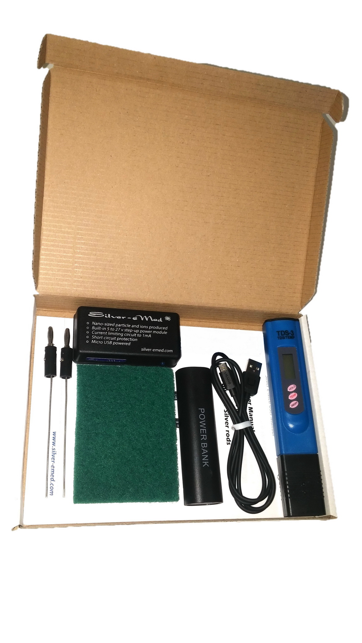 Silver-eMed C08 is complete end to end solution so you can make your own safe, micro-particle, therapeutic colloidal silver water.